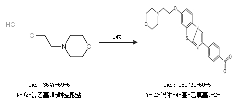 1.通过N-(2-氯乙基)吗啉盐酸盐合成7-(2-吗啉-4-基-乙氧基)-2-(4-硝基苯基)咪唑并[2,1-b][1,3]-苯并噻唑,收率约94%;