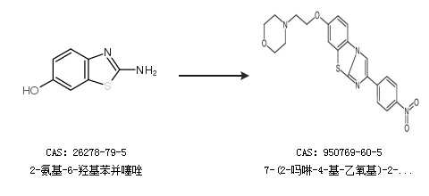 2.通过2-氨基-6-羟基苯并噻唑合成7-(2-吗啉-4-基-乙氧基)-2-(4-硝基苯基)咪唑并[2,1-b][1,3]-苯并噻唑