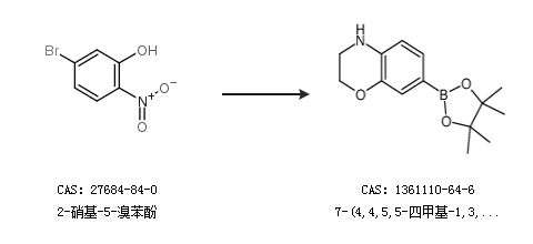 2.通过2-硝基-5-溴苯酚合成7-(4,4,5,5-四甲基-1,3,2-二噁硼烷-2-基)-3,4-二氢-2H-苯并[b][1,4]噁嗪