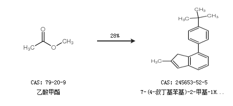 2.通过乙酸甲酯合成7-(4-叔丁基苯基)-2-甲基-1H-茚,收率约28%;