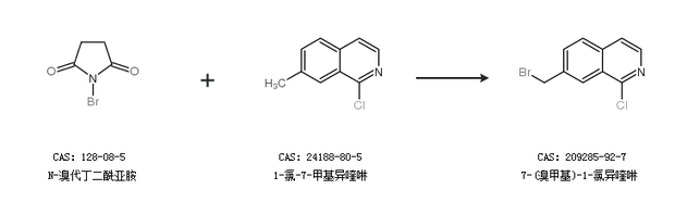 1.通过N-溴代丁二酰亚胺和1-氯-7-甲基异喹啉合成7-(溴甲基)-1-氯异喹啉