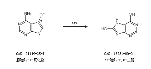 1.通过腺嘌呤-7-氧化物合成7H-嘌呤-6,8-二醇,收率约44%;