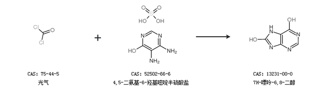 2.通过光气和4,5-二氨基-6-羟基嘧啶半硫酸盐合成7H-嘌呤-6,8-二醇