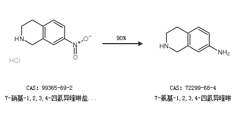 1.通过7-硝基-1,2,3,4-四氢异喹啉盐酸盐合成7-氨基-1,2,3,4-四氢异喹啉,收率约90%;