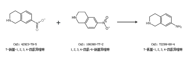 2.通过7-硝基-1,2,3,4-四氢异喹啉和1,2,3,4-四氢-6-硝基异喹啉合成7-氨基-1,2,3,4-四氢异喹啉