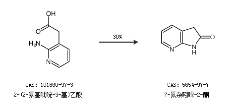 2.通过2-(2-氨基吡啶-3-基)乙酸合成7-氮杂吲哚-2-酮,收率约30%;