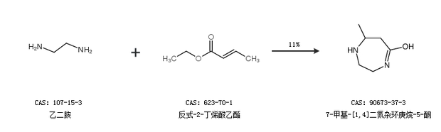 1.通过乙二胺和反式-2-丁烯酸乙酯合成7-甲基-[1,4]二氮杂环庚烷-5-酮,收率约11%;