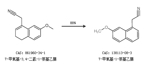 2.通过7-甲氧基-3,4-二氢-1-萘基乙腈合成7-甲氧基-1-萘基乙腈,收率约88%;