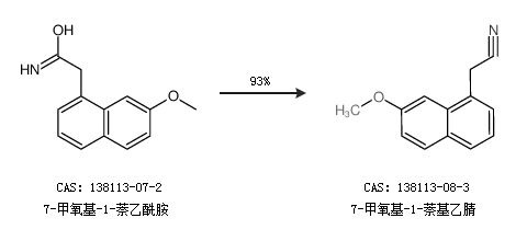 1.通过7-甲氧基-1-萘乙酰胺合成7-甲氧基-1-萘基乙腈,收率约93%;