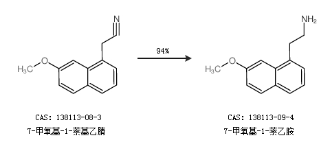 1.通过7-甲氧基-1-萘基乙腈合成7-甲氧基-1-萘乙胺,收率约94%;