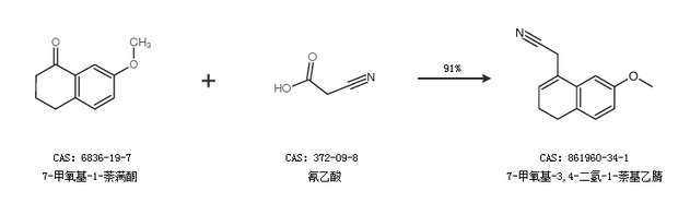 1.通过7-甲氧基-1-萘满酮和氰乙酸合成7-甲氧基-3,4-二氢-1-萘基乙腈,收率约91%;