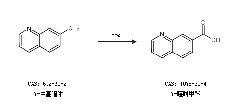 1.通过7-甲基喹啉合成7-喹啉甲酸,收率约58%;