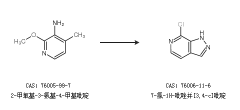 2.通过2-甲氧基-3-氨基-4-甲基吡啶合成7-氯-1H-吡唑并[3,4-c]吡啶