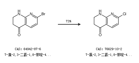 1.通过7-溴-2,3-二氢-1,8-萘啶-4(1h)-酮合成7-氯-2,3-二氢-1,8-萘啶-4(1h)-酮,收率约73%;