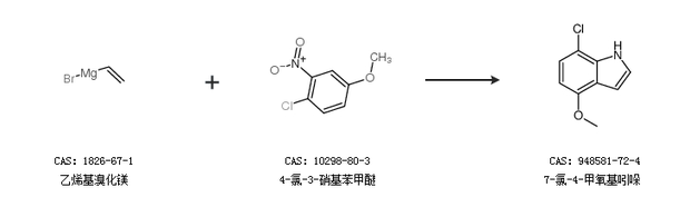 1.通过乙烯基溴化镁和4-氯-3-硝基苯甲醚合成7-氯-4-甲氧基吲哚