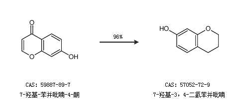 2.通过7-羟基-苯并吡喃-4-酮合成7-羟基-3,4-二氢苯并吡喃,收率约96%;