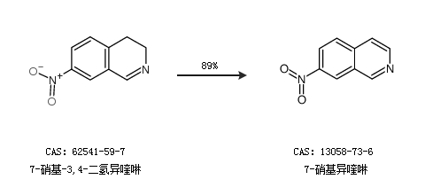 1.通过7-硝基-3,4-二氢异喹啉合成7-硝基异喹啉,收率约89%;