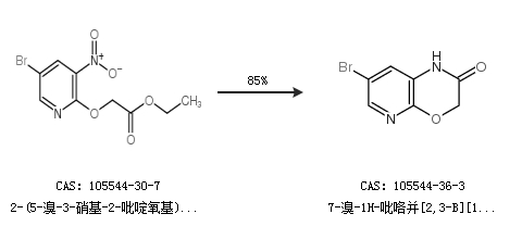 1.通过2-(5-溴-3-硝基-2-吡啶氧基)乙酸乙酯合成7-溴-1H-吡咯并[2,3-B][1,4]恶嗪-2(3H)-酮,收率约85%;