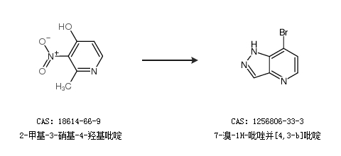1.通过2-甲基-3-硝基-4-羟基吡啶合成7-溴-1H-吡唑并[4,3-b]吡啶