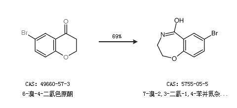 1.通过6-溴-4-二氢色原酮合成7-溴-2,3-二氢-1,4-苯并氮杂卓-5(4H)-酮,收率约69%;