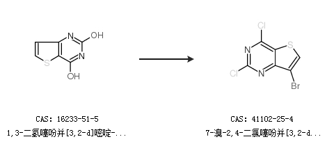 1.通过1,3-二氢噻吩并[3,2-d]嘧啶-2,4-二酮合成7-溴-2,4-二氯噻吩并[3,2-d]嘧啶