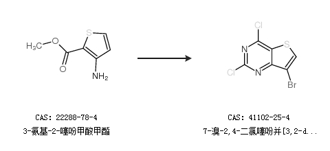 2.通过3-氨基-2-噻吩甲酸甲酯合成7-溴-2,4-二氯噻吩并[3,2-d]嘧啶