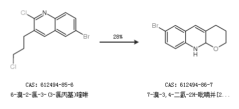 1.通过6-溴-2-氯-3-(3-氯丙基)喹啉合成7-溴-3,4-二氢-2H-吡喃并[2,3-b]喹啉,收率约28%;