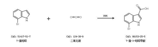 1.通过7-溴吲哚和二氧化碳合成7-溴-3-吲哚甲酸,收率约89%;