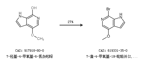 1.通过7-羟基-4-甲氧基-6-氮杂吲哚合成7-溴-4-甲氧基-1H-吡咯并[2,3-c]吡啶,收率约27%;
