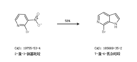 2.通过2-溴-3-硝基吡啶合成7-溴-6-氮杂吲哚,收率约58%;