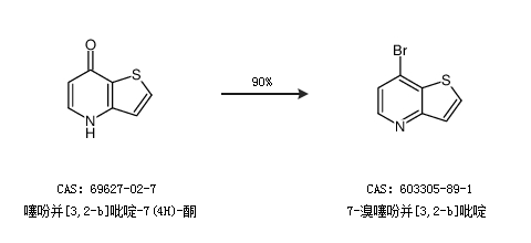 1.通过噻吩并[3,2-b]吡啶-7(4H)-酮合成7-溴噻吩并[3,2-b]吡啶,收率约90%;