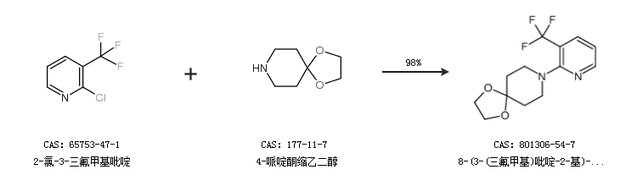 1.通过2-氯-3-三氟甲基吡啶和4-哌啶酮缩乙二醇合成8-(3-(三氟甲基)吡啶-2-基)-1,4-二噁-8-氮杂螺[4.5]癸烷,收率约98%;