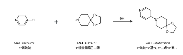 1.通过4-氯吡啶和4-哌啶酮缩乙二醇合成8-吡啶-4-基-1,4-二噁-8-氮杂螺[4.5]癸烷,收率约90%;