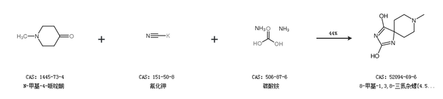 2.通过N-甲基-4-哌啶酮、氰化钾和碳酸铵合成8-甲基-1,3,8-三氮杂螺[4.5]癸烷-2,4-二酮,收率约44%;