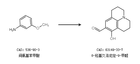 2.通过间氨基苯甲醚合成8-羟基久洛尼定-9-甲醛