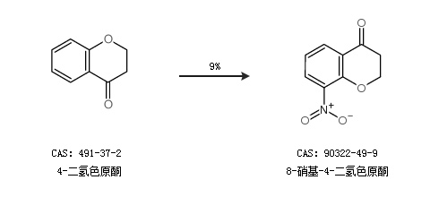 1.通过4-二氢色原酮合成8-硝基-4-二氢色原酮,收率约9%;