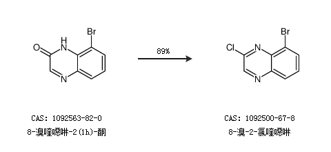 1.通过8-溴喹噁啉-2(1h)-酮合成8-溴-2-氯喹噁啉,收率约89%;