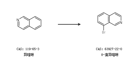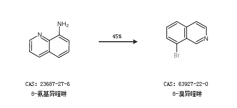 1.通过8-氨基异喹啉合成8-溴异喹啉,收率约45%;