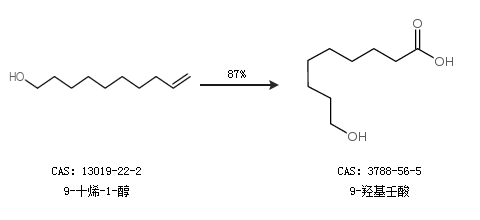 1.通过9-十烯-1-醇合成9-羟基壬酸,收率约87%;
