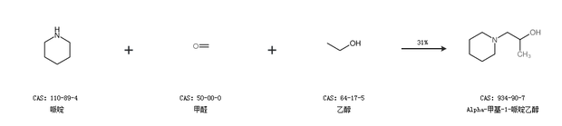 2.通过哌啶、甲醛和乙醇合成Alpha-甲基-1-哌啶乙醇,收率约31%;