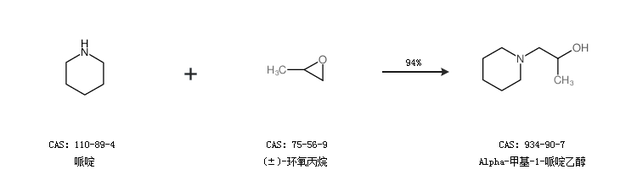 1.通过哌啶和(±)-环氧丙烷合成Alpha-甲基-1-哌啶乙醇,收率约94%;