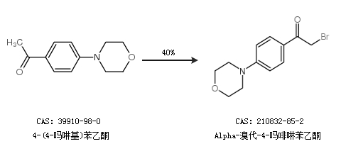 1.通过4-(4-吗啉基)苯乙酮合成Alpha-溴代-4-吗啡啉苯乙酮,收率约40%;