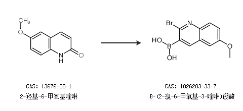 2.通过2-羟基-6-甲氧基喹啉合成B-(2-溴-6-甲氧基-3-喹啉)硼酸