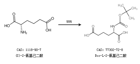 1.通过(S)-2-氨基己二酸合成Boc-L-2-氨基己二酸,收率约99%;