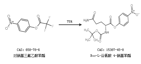 1.通过对硝基三氟乙酸苯酯合成Boc-L-谷氨酸 4-硝基苯酯,收率约75%;