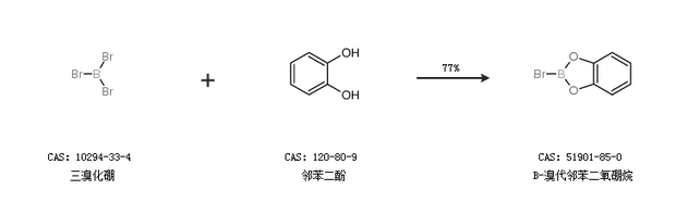 1.通过邻苯二酚合成B-溴代邻苯二氧硼烷,收率约90%;