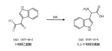 1.通过3-吲哚乙醛酸合成D,L-3-吲哚甘氨酸,收率约94%;