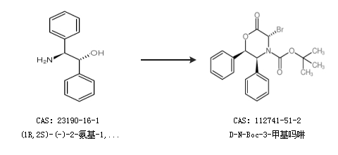 1.通过(2R,3S)-(-)-N-Boc-2,3-二苯基-6-氧代吗啉合成D-N-Boc-3-甲基吗啉