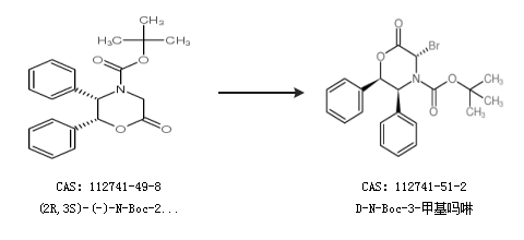 英文别名 (3S,5S,6R)-tert-Butyl 3-bromo-2-oxo-5,6-diphenylmorpholine-4-carboxylate;D-N-Boc-3-methyl morpholine;(3S,5S,6R)-3-bromo-4(tert-butoxycarbonyl)-5,6-diphenyl-2,3,5,6-tetrahydro-4H-1,4-oxazin-2-one;