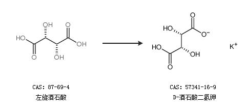 1.通过左旋酒石酸合成D-酒石酸二氢钾